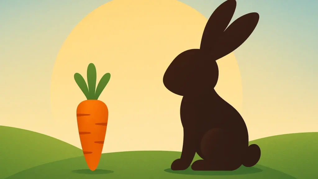 Além disso, a cenoura ajuda a marcar território visual. Em publicidade e merchandising, a imagem do coelho com a cenoura é imediata.